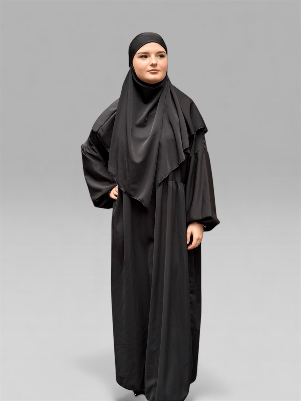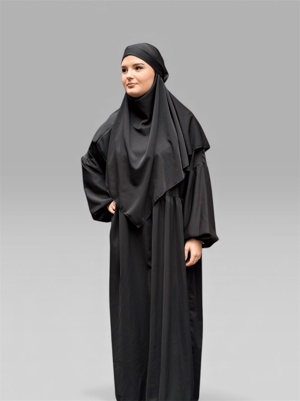 Two-Piece Set: Consists of a loose-fitting Abaya and a matching Khimar headscarf for a harmonious overall look.