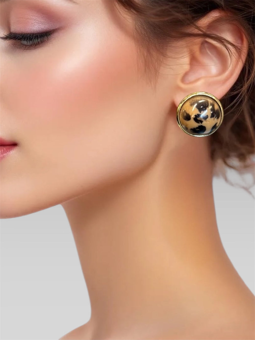 Setze ein Statement mit den Ohrringen „Leo“ – ein kraftvolles Accessoire für alle, die ihre wilde Seite mit Stil zeigen wollen. Die runde Goldfassung umrahmt ein markantes Leo-Muster in Schwarz und Weiß, das sofort ins Auge fällt und jedem Outfit Charakter verleiht.