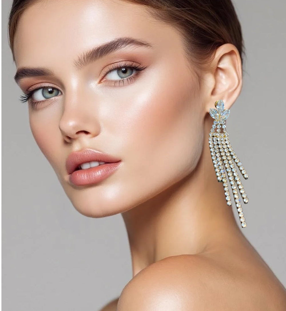 Die Ohrringe Moni sind mehr als ein Accessoire – sie sind ein Statement. Mit ihrem floralen Design und den funkelnden Strasssteinen verleihen sie jedem Look eine raffinierte Note. Die langen, filigranen Stränge tanzen bei jeder Bewegung und fangen das Licht auf magische Weise ein.