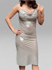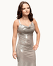 Schimmernde Oberfläche und figurbetonte Silhouette für einen glamourösen Look.