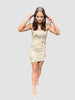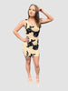 Ein Statement für selbstbewusste Weiblichkeit: Das Kleid „Amara“ vereint klassische Silhouette mit modernem Flair. Der figurbetonte Schnitt schmeichelt der Körperform, während das kontrastreiche florale Muster in Beige auf tiefem Schwarz für einen ausdrucksstarken Look sorgt. Die ärmellose Form und der kurze Saum setzen die Beine gekonnt in Szene – perfekt für besondere Anlässe oder den stilvollen Auftritt am Abend.