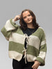 Dieser Oversize-Strickcardigan ist ein kuscheliges und schickes Kleidungsstück, das jedem Outfit einen Hauch von Lässigkeit verleiht. Die auffälligen Querstreifen und der einzigartige Bindeverschluss vorne verleihen ihm einen entspannten, modernen Look.